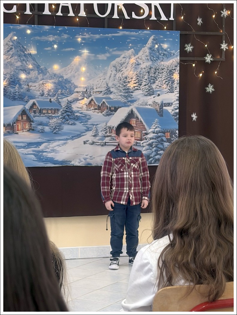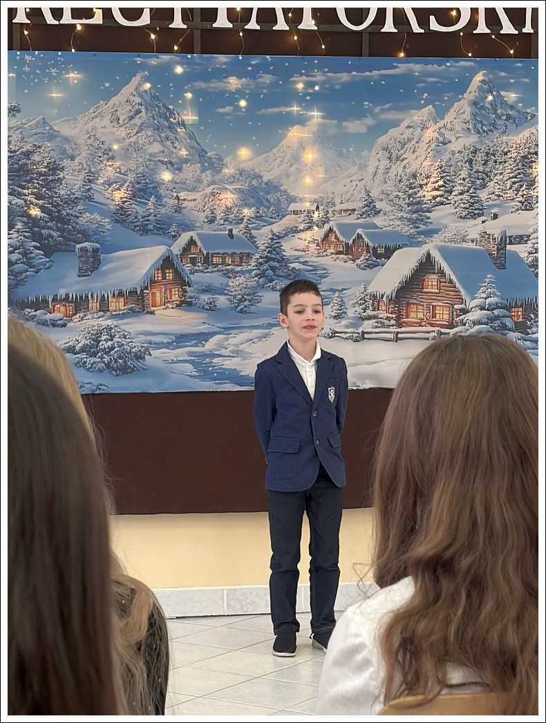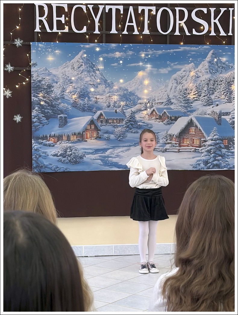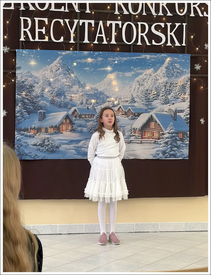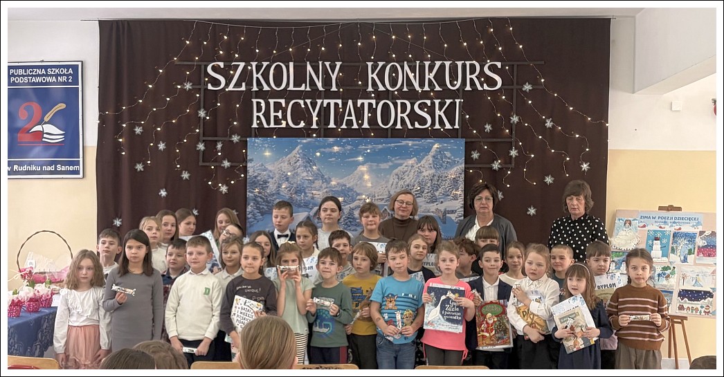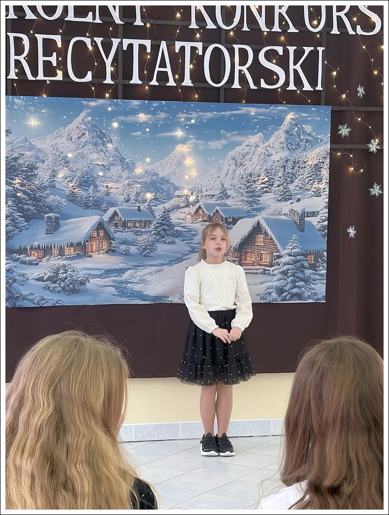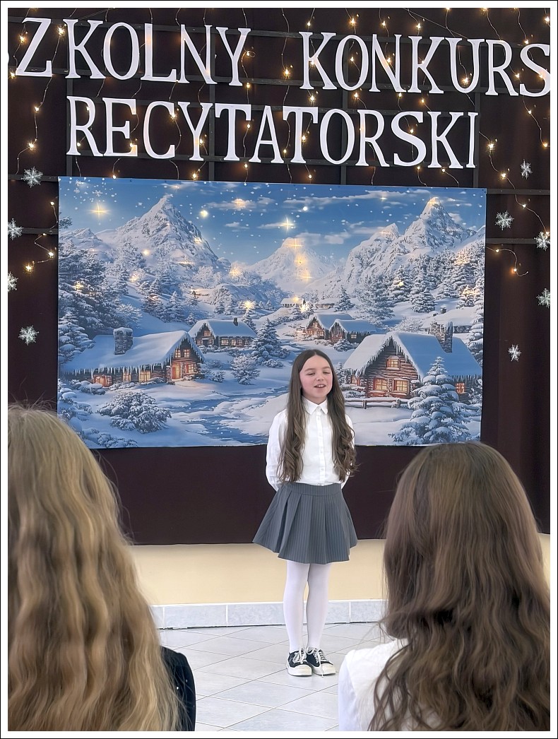4 lutego w naszej szkole odbył się Szkolny Konkurs Recytatorsko-Plastyczny pt. „Zima w poezji dziecięcej”, skierowany do uczniów klas 0–III. Organizatorkami konkursu były pani Zofia Krupa oraz pani Lucyna Gancarz, którym serdecznie dziękujemy za zaangażowanie i przygotowanie wydarzenia. Występy uczestników oraz prace plastyczne oceniało jury w składzie: