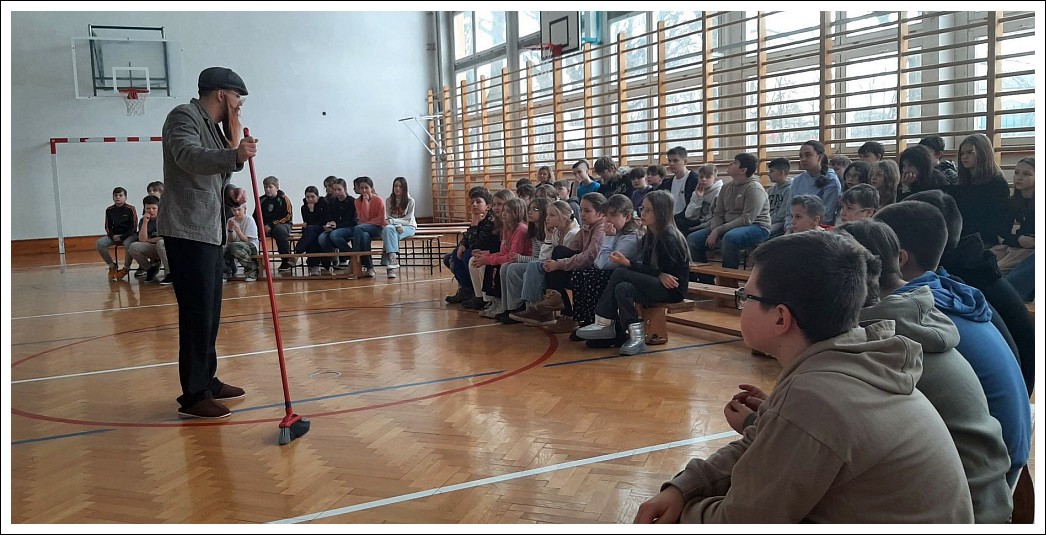 W dniu 11.02.2026 r. , w murach naszej szkoły odbyły się dwa wyjątkowe spektakle profilaktyczne, w których uczestniczyli uczniowie naszej szkoły oraz uczniowie Publicznej Szkoły Podstawowej nr 3 im. Marii Konopnickiej. Pierwszy z nich, „Mruczek – kot, który bał się myszy”, został przygotowany z myślą o najmłodszych – uczniach klas 0–III. Przedstawienie opowiadało historię kota Mruczka, który mimo bezpiecznego domu i troskliwej opieki zmaga się z samotnością i nadmiernym korzystaniem z Internetu. W trudnym momencie pojawia się myszka Krysia, która przełamuje strach i nawiązuje z nim rozmowę. Historia uczy, że różnice nie muszą dzielić, a prawdziwa przyjaźń, wsparcie i empatia mają ogromną wartość. Spektakl poruszał także temat odpowiedzialnego korzystania z technologii, znaczenia współpracy i budowania relacji opartych na akceptacji. Drugi spektakl, „Jak ja na to patrzę”, był skierowany do uczniów klas IV–VIII. Historia ukazywała losy dwojga uczniów – Jacka, wychowującego się w skromnej, lecz pełnej miłości rodzinie, oraz Marzeny, która mimo dostatniego życia doświadcza przemocy i braku wsparcia. Spektakl uświadamiał młodzieży, że nie należy oceniać innych po pozorach ani przez pryzmat statusu materialnego. Podkreślał także znaczenie empatii, wrażliwości na potrzeby rówieśników oraz gotowości do niesienia wsparcia osobom w kryzysie. Oba przedstawienia w atrakcyjny sposób przekazały wartości wychowawcze i profilaktyczne, wpisując się w działania szkoły na rzecz zdrowia psychicznego, przeciwdziałania przemocy i rozwijania postaw prospołecznych wśród uczniów. Przedstawienia odbyły się w murach naszej szkoły, tworząc wyjątkową okazję do wspólnego przeżywania i refleksji. Składamy serdeczne podziękowania Grupie Teatralnej Kurtyna za profesjonalne i poruszające spektakle. Wyrazy wdzięczności kierujemy również do Burmistrza Gminy i Miasta Rudnik za wsparcie i ufundowanie tego wartościowego wydarzenia.