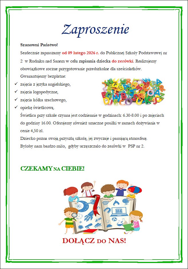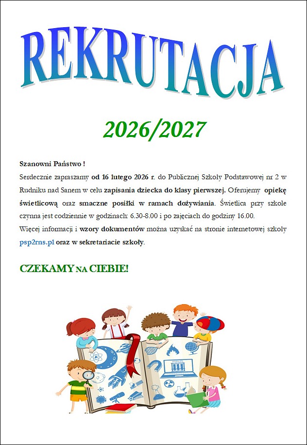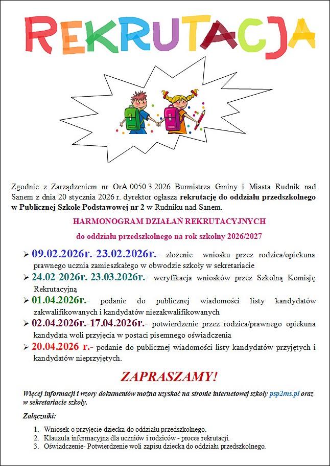 REKRUTACJA do oddziału przedszkolnego na rok szkolny 2026/2027