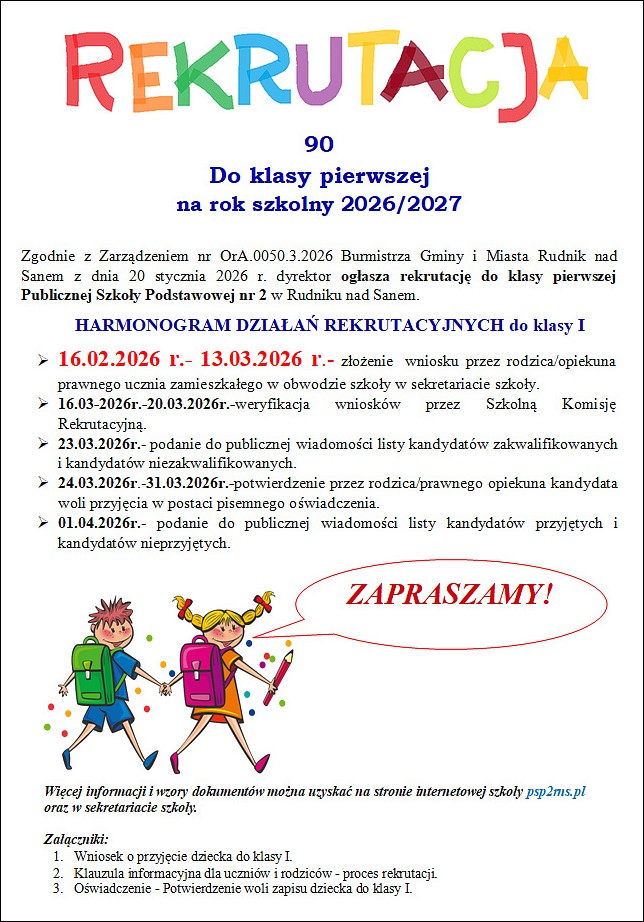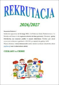 REKRUTACJA do klasy pierwszej na rok szkolny 2026/2027